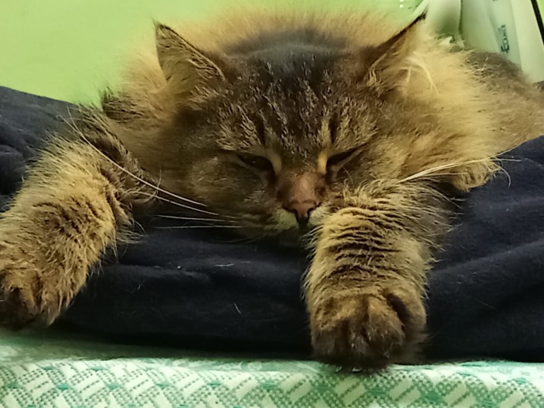 Ранее мы ходили в клинику с двумя кошками. Одна из кошек после операции, где сделали шов, была спасена и пришла в себя, а другого кота реанимировали, хотя в других местах не могли помочь. Кот стал лучше, шерсть начала зарастать, и спустя месяц он полностью восстановился.